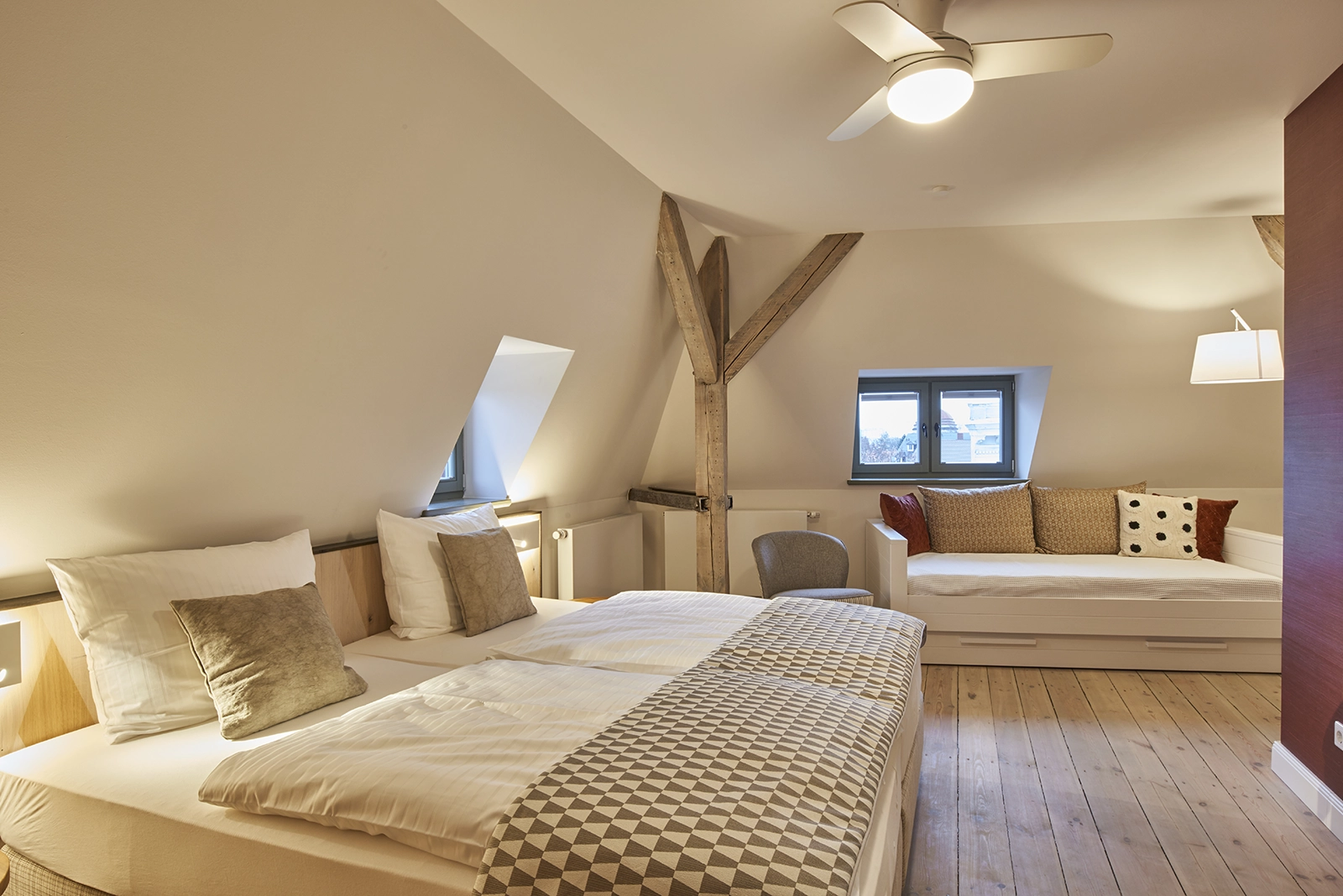 In den außergewöhnlichen und modernen Deluxe Appartements, die sich mit zwei separaten Schlafmöglichkeiten hervorhebt, verbringen Sie ganz besonders gemütliche Tage in Görlitz. Genießen Sie auch den Abend auf dem zusätzlichen Balkon mit einem Gläschen Wein.