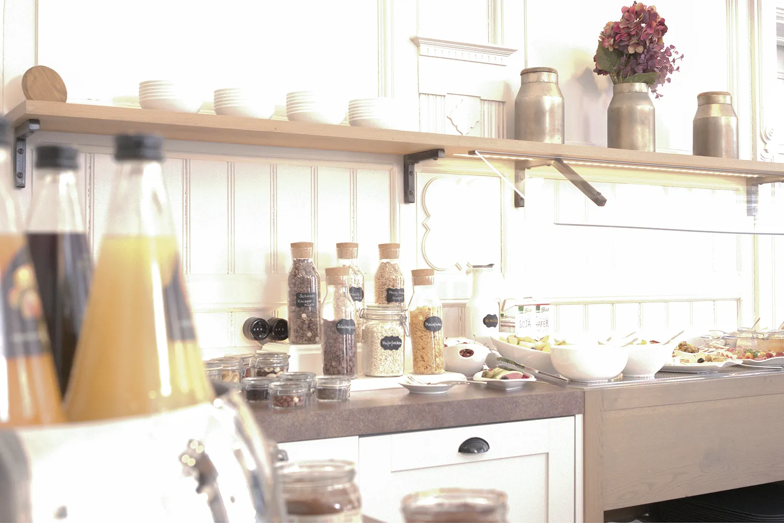 Natürlich können Sie sich Ihr Frühstück in Ihrer Küche selbst zubereiten. Zum Entspannen und Leute kennenlernen empfehlen wir Ihnen aber unser leckeres VIA’s-Frühstück mit Brot- und Brötchensorten, fruchtigen Marmeladen und Honig, Müsli, Obst, Nüssen, Trockenfrüchten, verschiedenen Wurst- und Käsesorten sowie Gebäck – dazu Fruchtsäfte und Kaffee- und Teespezialitäten.