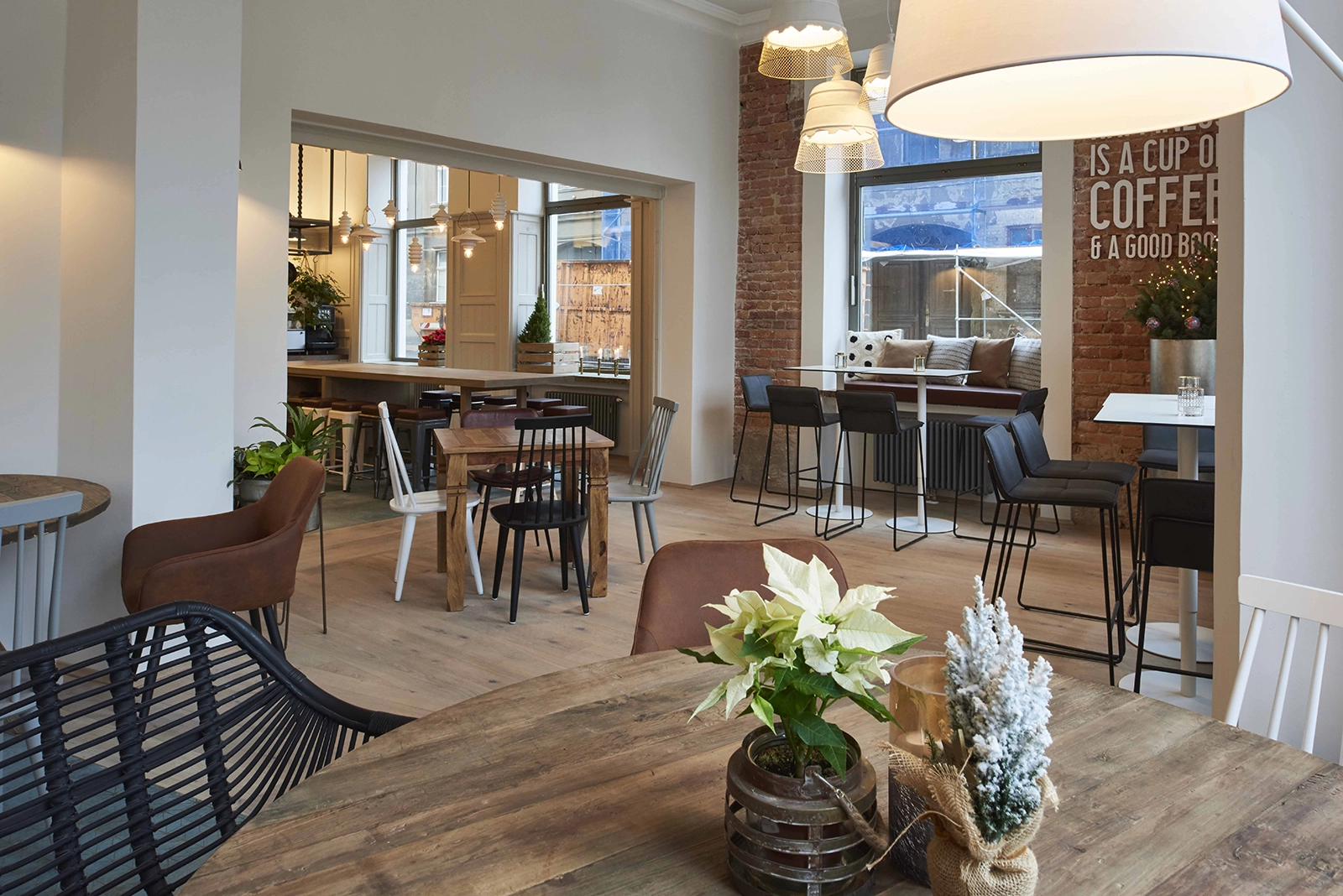 Verweilen, genießen, reden, am Laptop arbeiten – beim Kaffee mit Brownie oder Brezel. In bequemen Sesseln unserer Café-Lounge können Sie die Atmosphäre genießen. Eben tun und lassen, was Sie wollen.