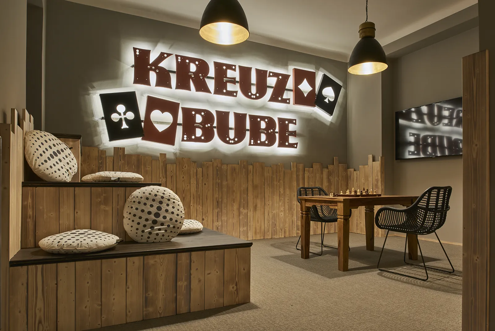 Die VIA’s-Lounge mit Bibliothek und Freizeitraum mit Tischfußball und TV bietet Ihnen Spaß und Unterhaltung. Auch nach dem Frühstück bis zum Nachmittag erhalten Sie Kaffee, Tee und weitere Heißgetränke gegen Gebühr. Damit niemand durstig einschlafen muss – ran an den Snack- und Getränkeautomaten, der schläft nie.